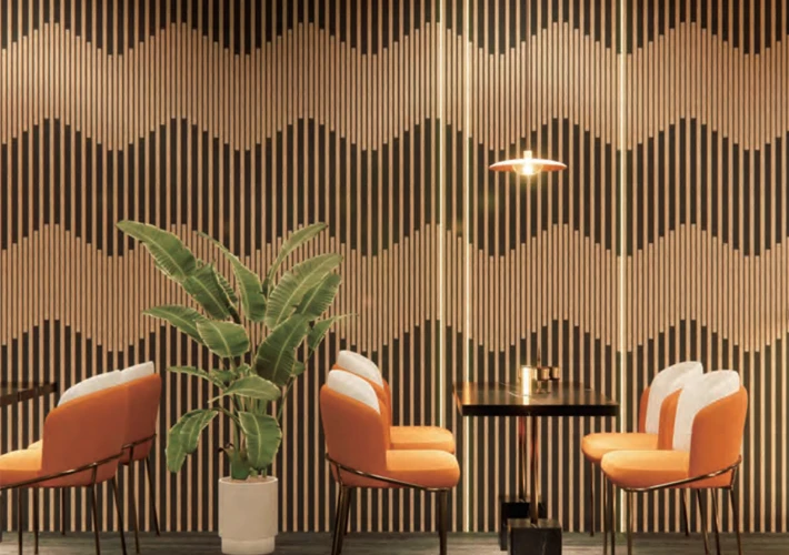 In restaurant environments, acoustic slat walls became focal design features while controlling ambient noise, meeting both design and regulatory expectations.