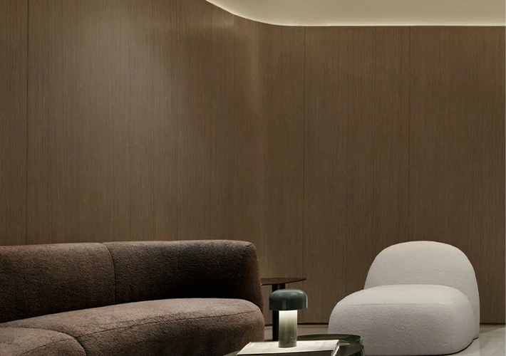 These high-traffic areas require materials that are durable, fire-rated, and easy to clean. Bamboo charcoal wood veneer meets these requirements while maintaining a high-end visual standard.