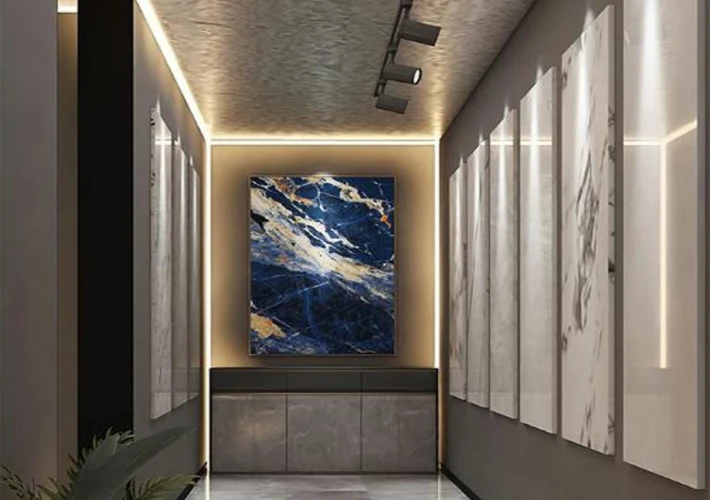 Hotel corridors experience high foot traffic and frequent cleaning. PVC marble sheets are ideal due to: