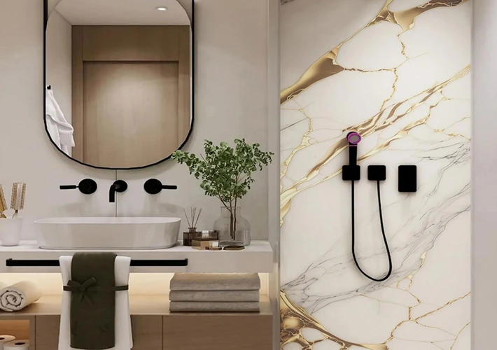 PVC marble sheets are 100% waterproof, making them ideal for humid environments. Unlike gypsum boards or painted walls, they do not absorb moisture, swell, or crack over time.