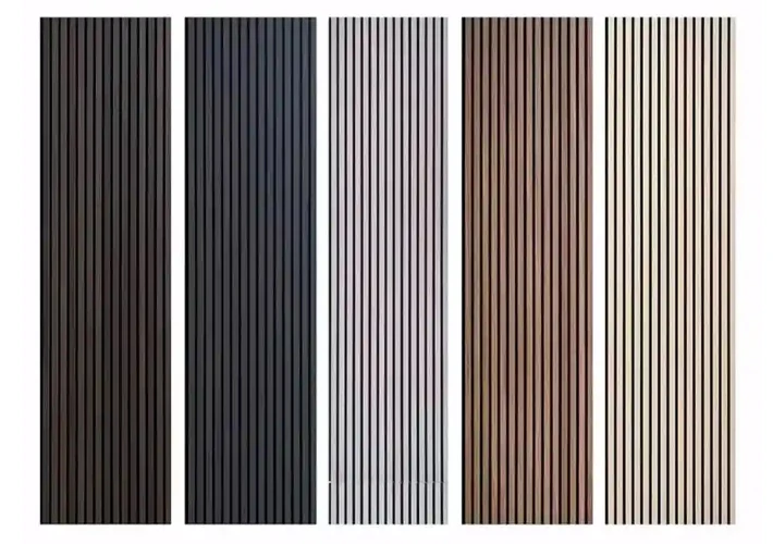 Wood acoustic wall panels are decorative sound-absorbing panels made from materials such as MDF (Medium Density Fiberboard), bamboo charcoal wood, or solid wood veneer. They feature precision-engineered grooves or slats on the surface and acoustic felt backing to enhance sound absorption.